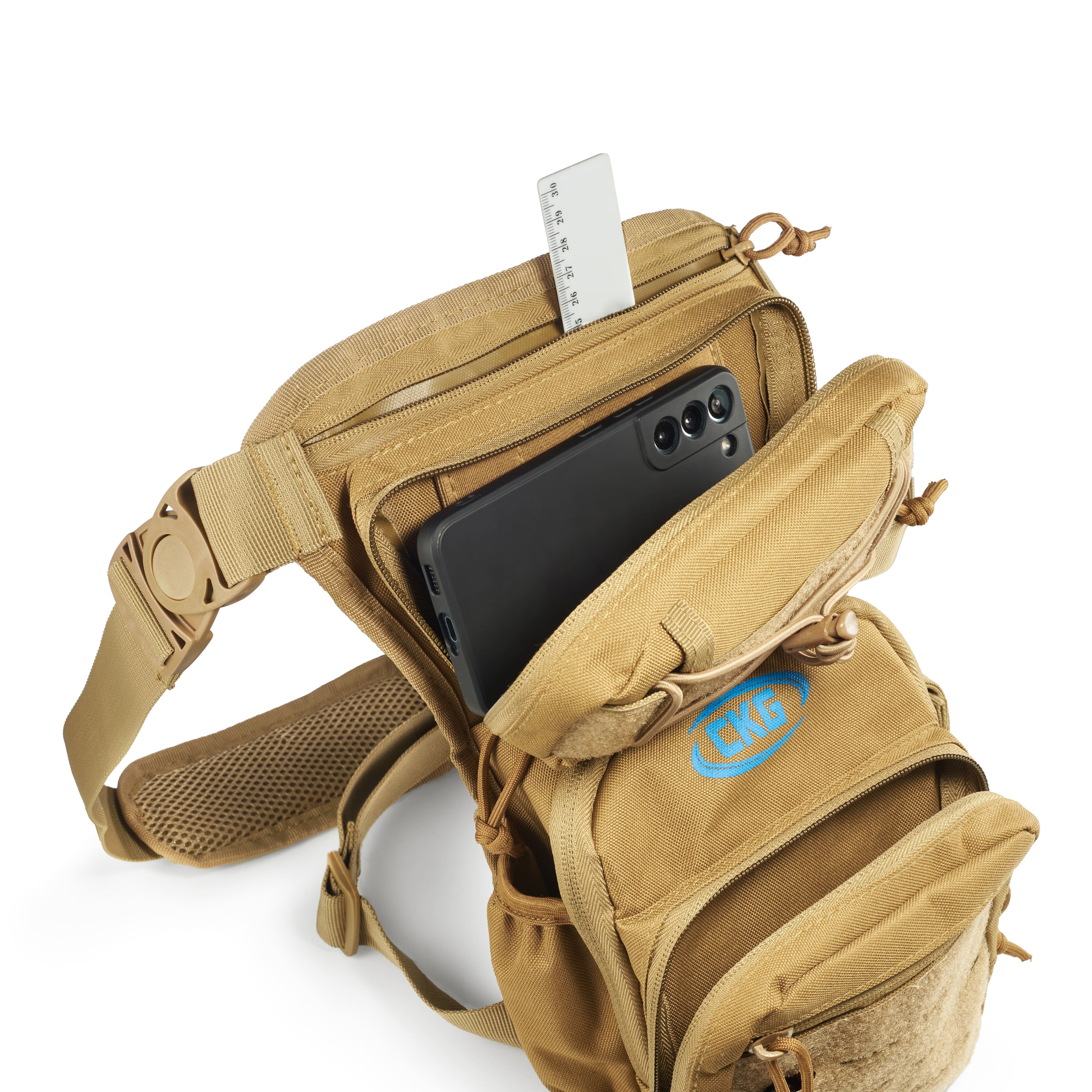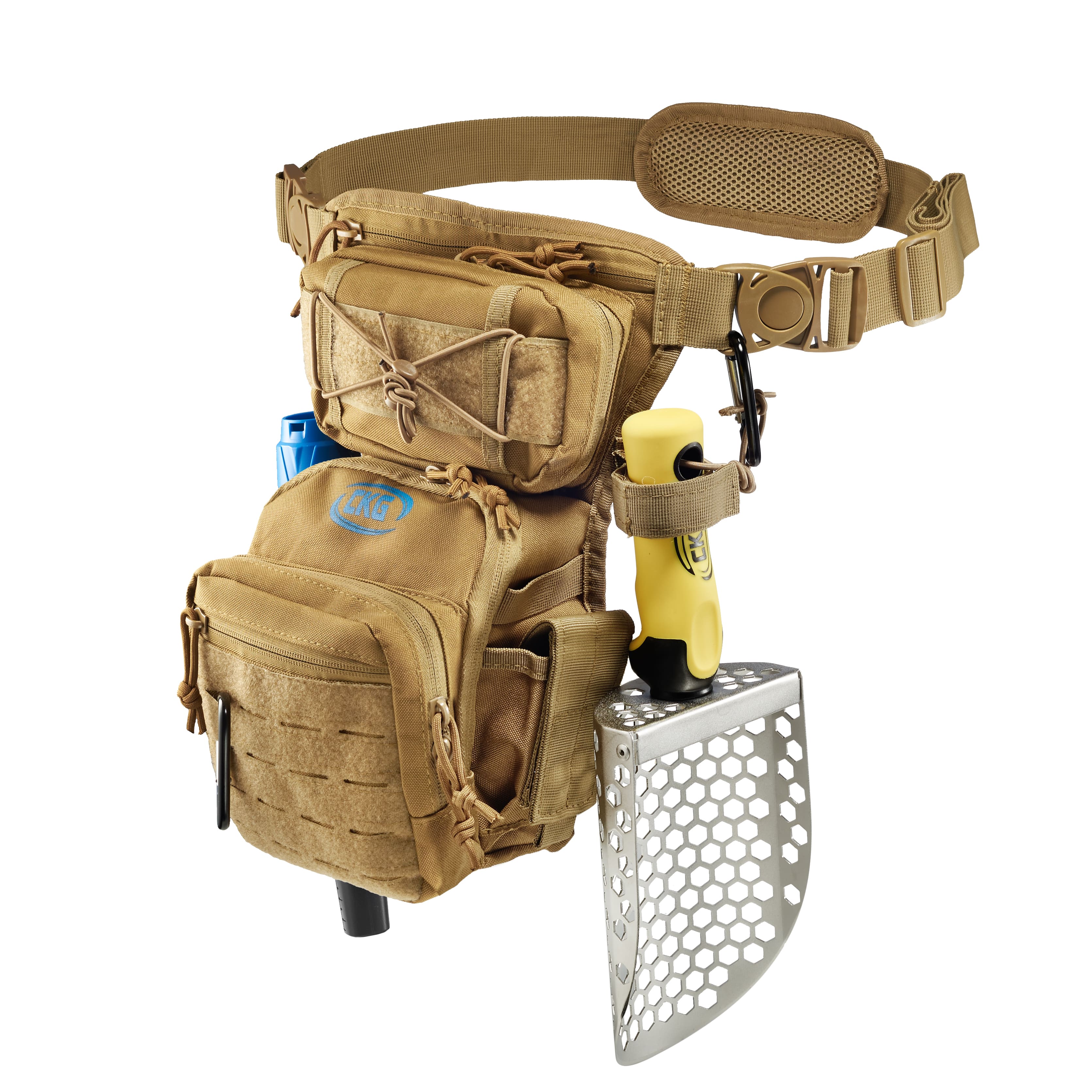 Gear up for your next adventure with the CKG Khaki Tactical Waist Bag, designed specifically for metal detecting enthusiasts. This rugged, heavy-duty pouch features multiple compartments and secure holders for your sand scoop, pinpointer, flashlight, and digging tools.